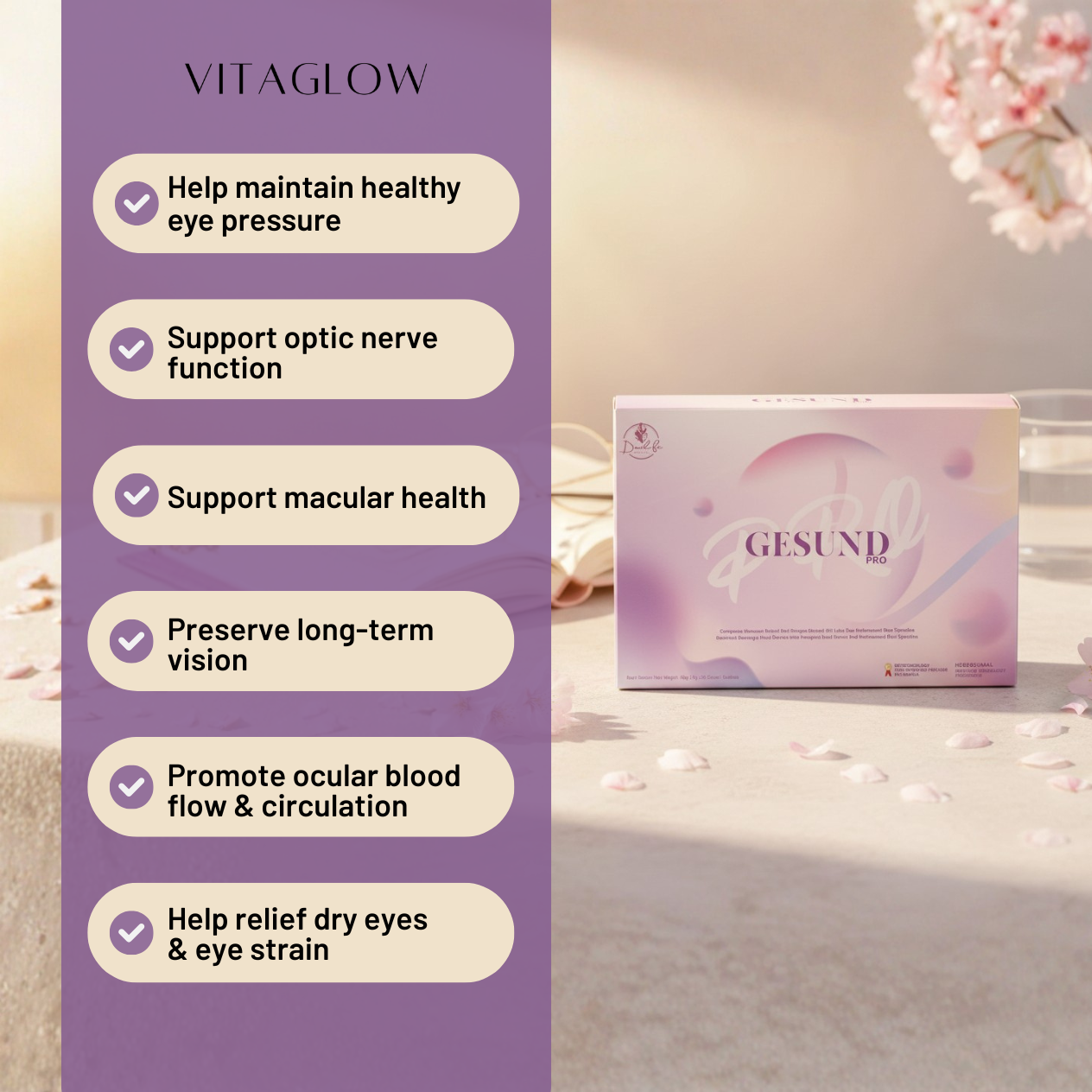 Gesund Pro is a premium daily eye supplement for adults who want clearer vision and more comfortable eyes.